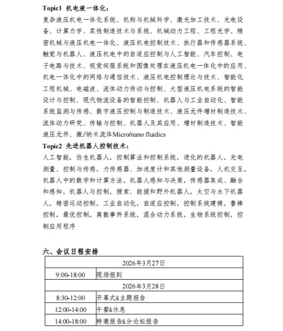 值全球智能制造与工业自动化技术加速迭代之际,第二届机电液一体化与先进机器人控制技术国际会议(HARCT 2026)定于2026年3月27日至29日,在中国广东韶关盛大召开。
