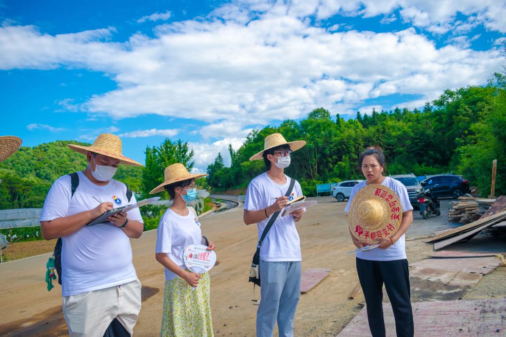 图为蒋军秀带领实践成员走进葡萄基地