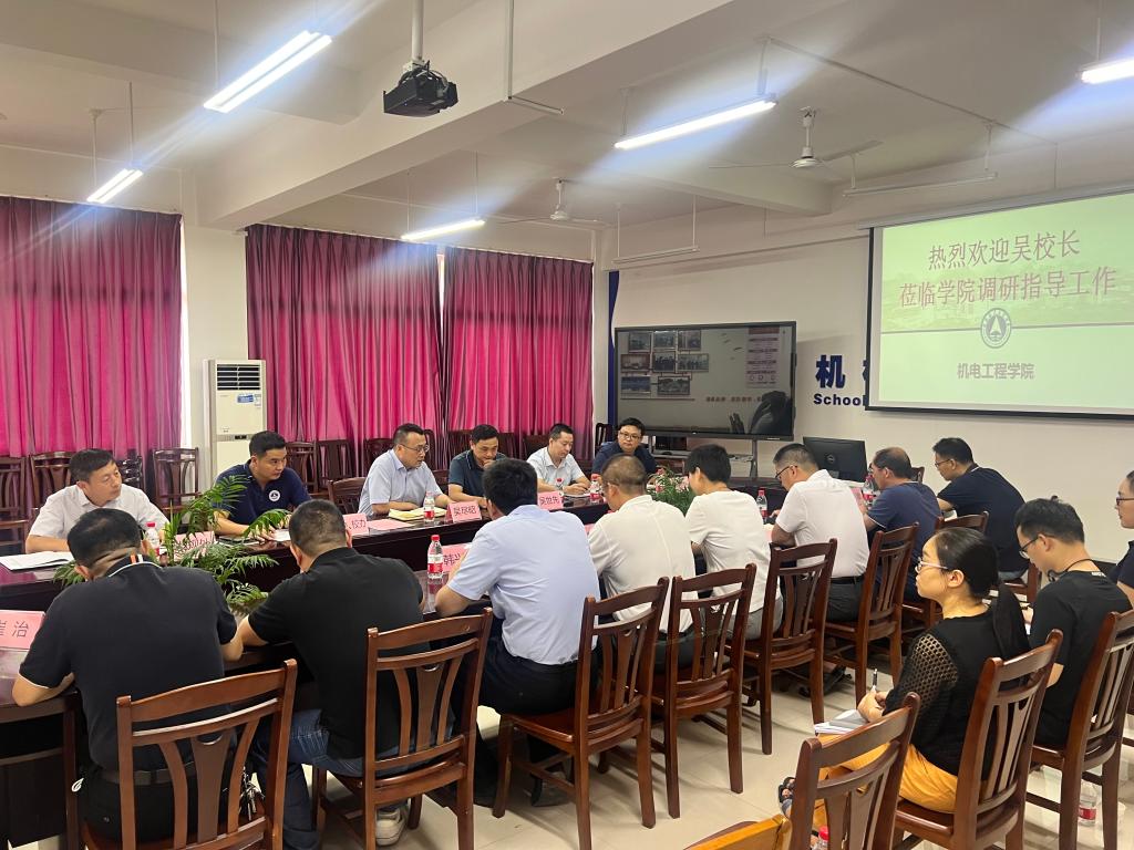 9月6日下午,校长吴尽昭在副校长吴世先,党办、校办,发规处、教务处以及科技处负责人的陪同下,莅临机电工程学院调研指导工作。学院党政班子,各学科带头人及科研团队负责人参加座谈。