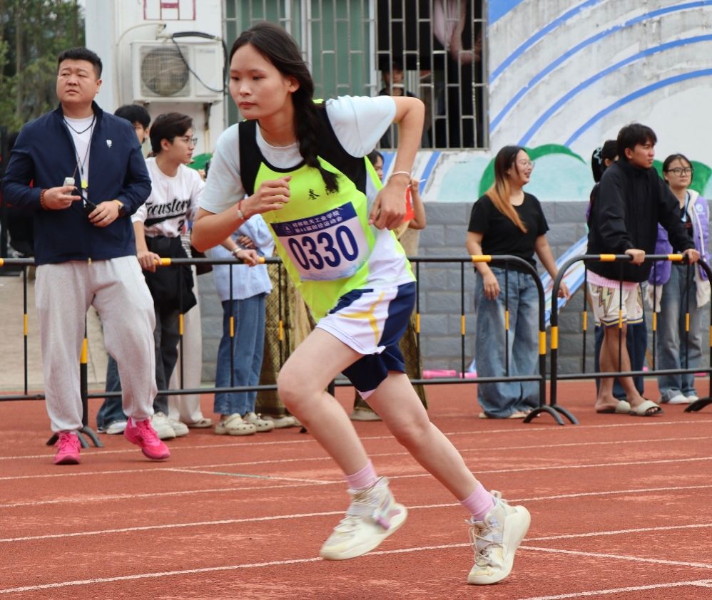 赛场上,机电健儿奋勇争先:短跑项目中,运动员如离弦之箭全力冲刺;跳远场地,助跑起跳一气呵成;跳高赛场,横杆攀升见证突破;铅球投掷,力量之美尽显锋芒。4×400米接力赛中,队员们默契配合、精准交接,将团结协作精神诠释得淋漓尽致。