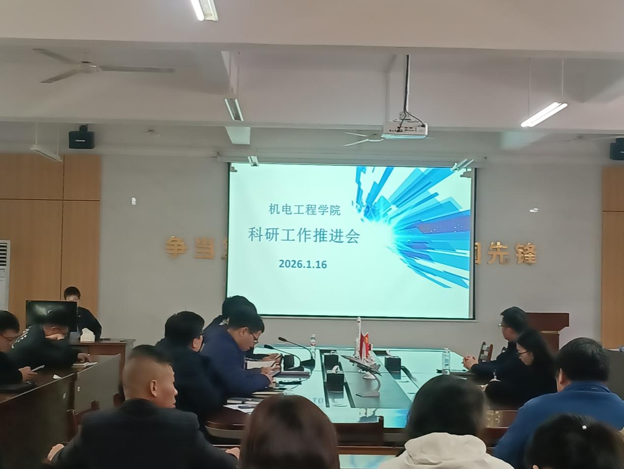 2026年1月16日,机电工程学院召开2026年度科研工作推进会暨国家自然科学基金申报动员会,全面总结学院近期科研重点工作,并部署新一年核心任务。会议由学院副院长宋小辉教授主持,全体教师参加。会议聚焦三大主题,旨在巩固基础、明确方向、规范流程。