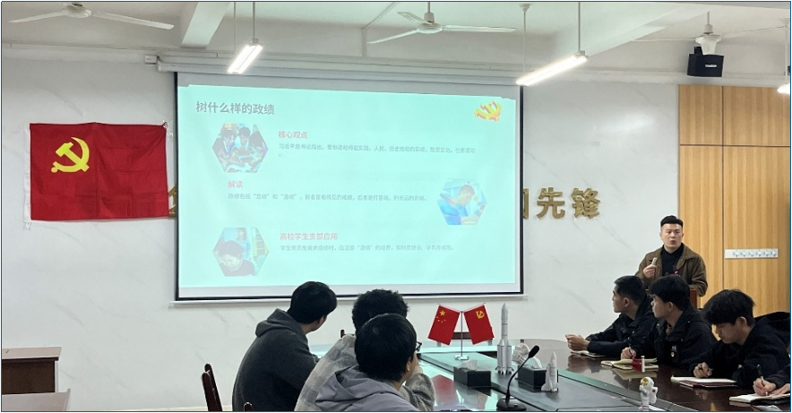 最后,陈老师作总结强调,全体支部党员和入党积极分子要以此次专题学习为契机,把树立和践行正确政绩观作为长期的思想和行动要求,持续加强理论学习、深化思想认识,坚决抵制各类错误倾向,始终坚守实事求是、真抓实干的作风,在专业学习中求实效、在担当作为中显初心、在青春奋斗中创实绩,切实发挥青年党员的先锋模范作用,将正确政绩观内化于心、外化于行。