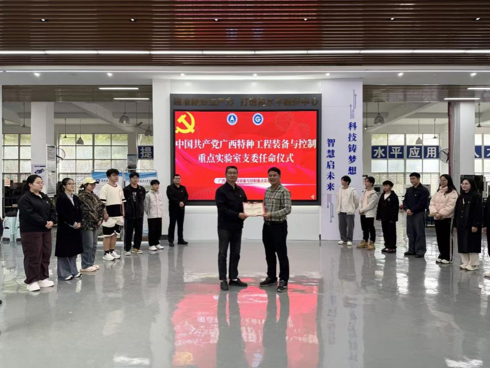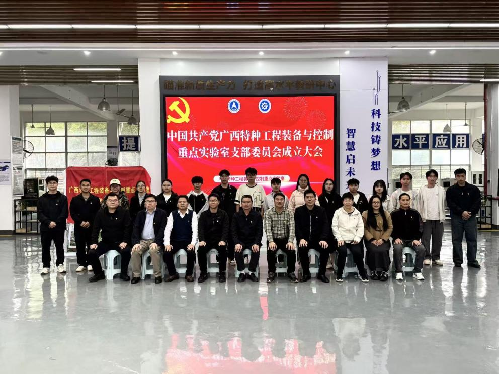 3月31日下午,广西特种工程装备与控制重点实验室党支部成立仪式在巡天楼一楼举行。机电工程学院党委全体领导班子,重点实验室主任刘忠教授,实验室青年骨干、科研助理及研究生、本科生党员出席会议。
