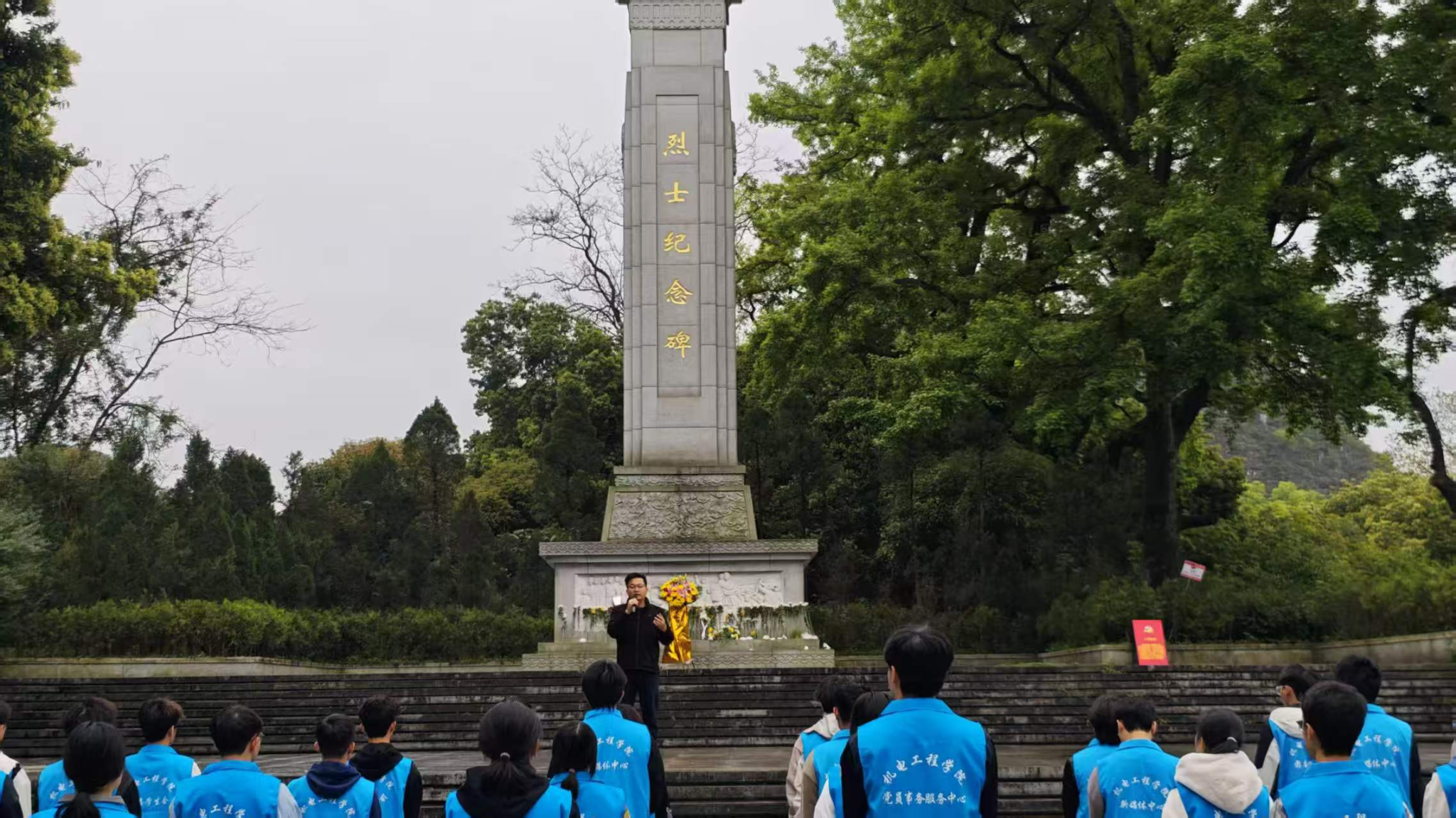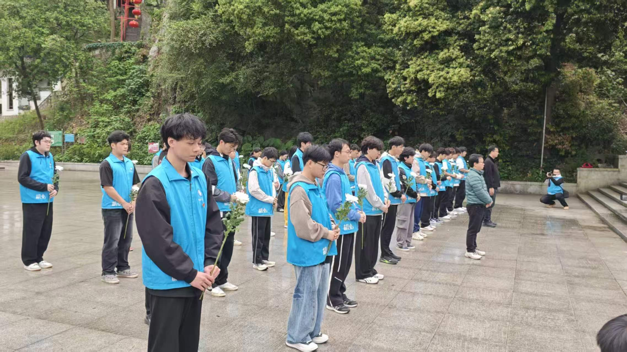 活动现场庄严肃穆。在巍峨的烈士纪念碑前,全体成员整齐列队。祭扫仪式上,学生代表敬献花圈,全体人员默哀一分钟,向革命先烈致以深切哀思。随后,党员们依次缓步上前,将手中的小白花轻轻放置于墓碑旁,驻足瞻仰,表达对先烈的崇高敬意。学生代表深情回顾革命先烈的感人事迹,带队老师黄大键寄语青年党员,勉励大家铭记历史、传承红色基因,将个人理想融入国家和民族事业之中,为实现中华民族伟大复兴贡献青春力量。