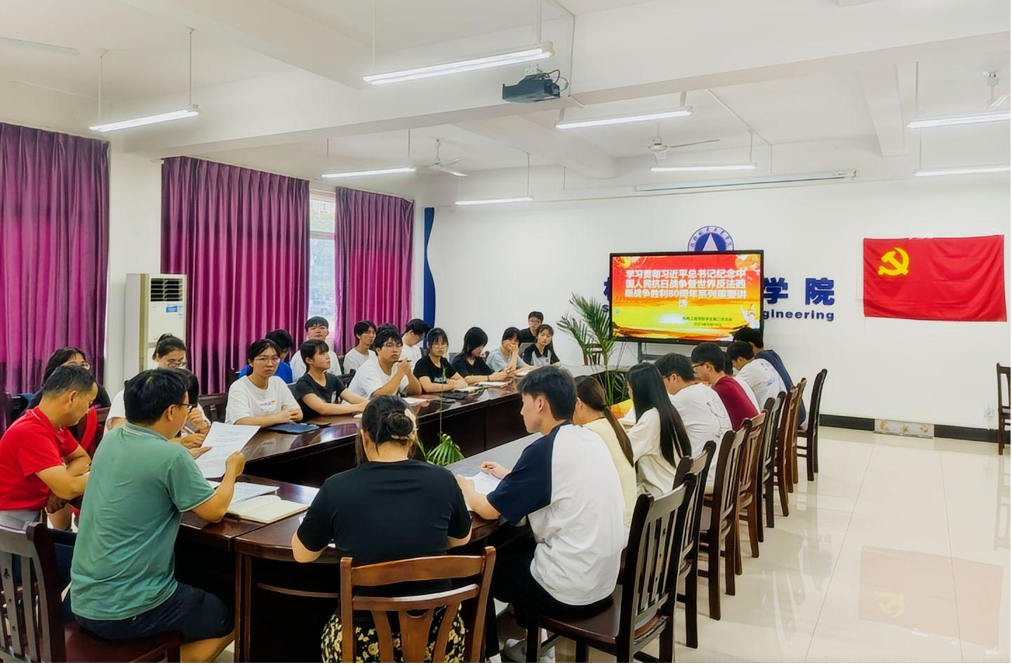 9月18日,在纪念中国人民抗日战争暨世界反法西斯战争胜利80周年之际,桂林航天工业学院机电工程学院学生第二党支部于巡天楼205会议室开展“铭记历史・铸剑长空”反法西斯主题思政大课堂。活动由机电工程学院学生第二党支部书记主持,全体党员及预备党员参加。